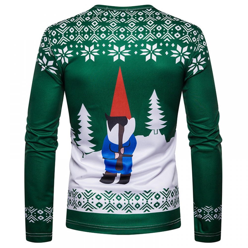 New 3D Personality Printing Fashion Men’s Christmas Santa Pattern Long-Sleeved T-Shirt