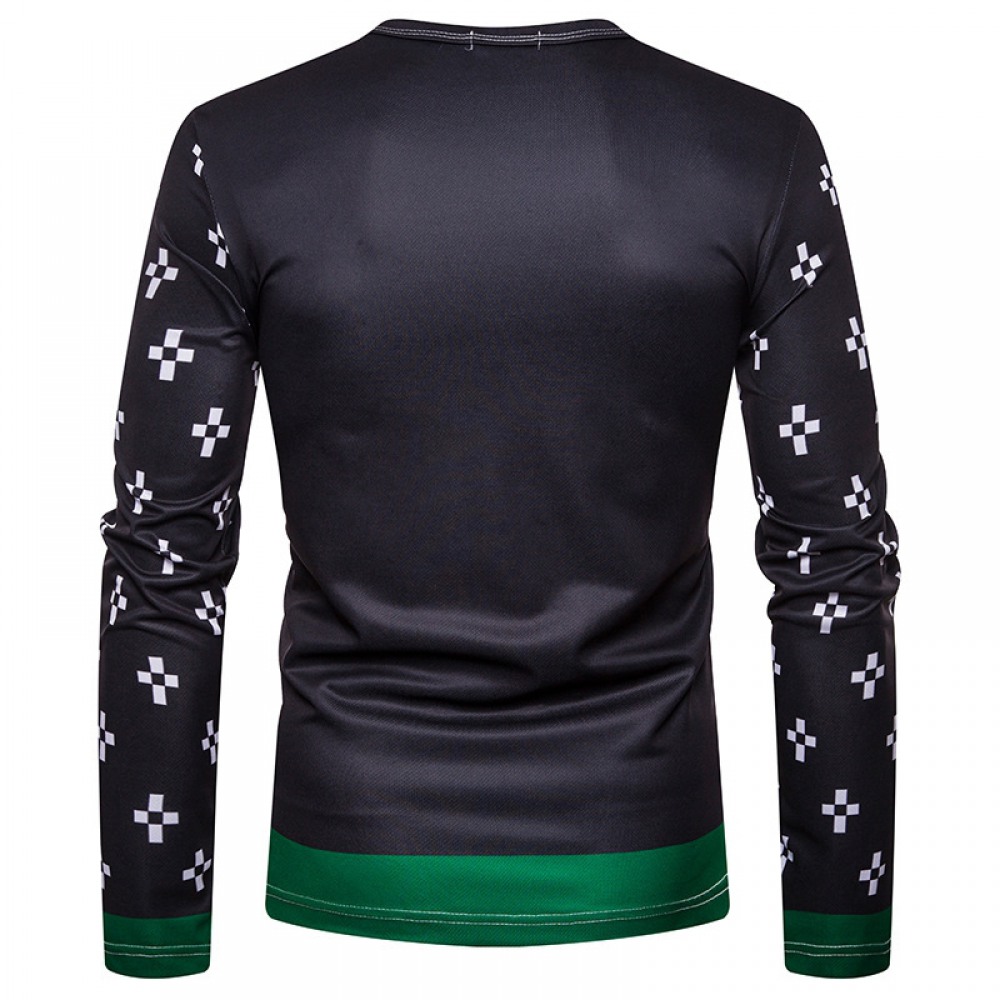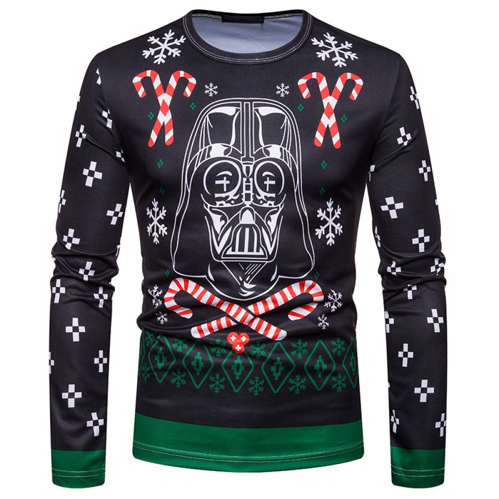 New 3D Personality Printing Fashion Men’s Christmas Skull Pattern Long-Sleeved T-Shirt