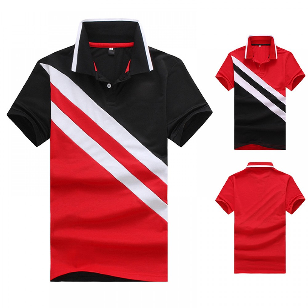 New Men’s Wind Diagonal Stripes Stitching Lapel Short-Sleeved Large Size T-Shirt