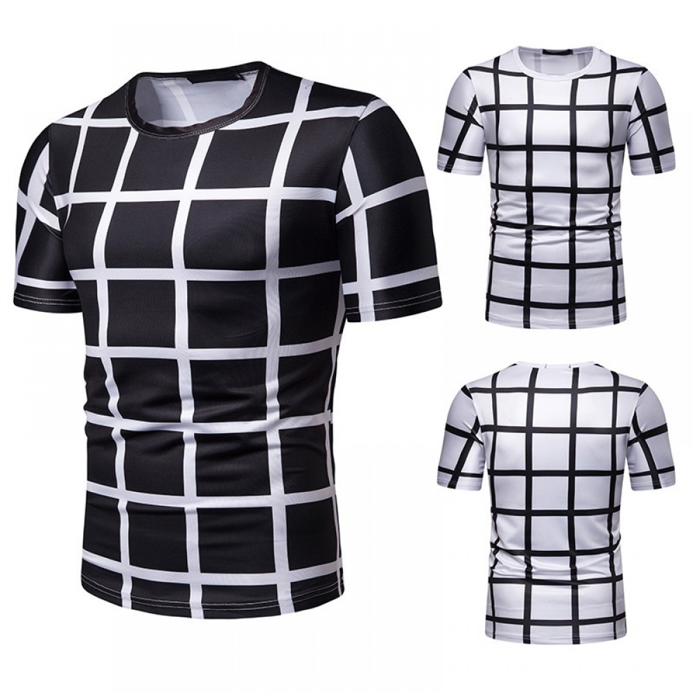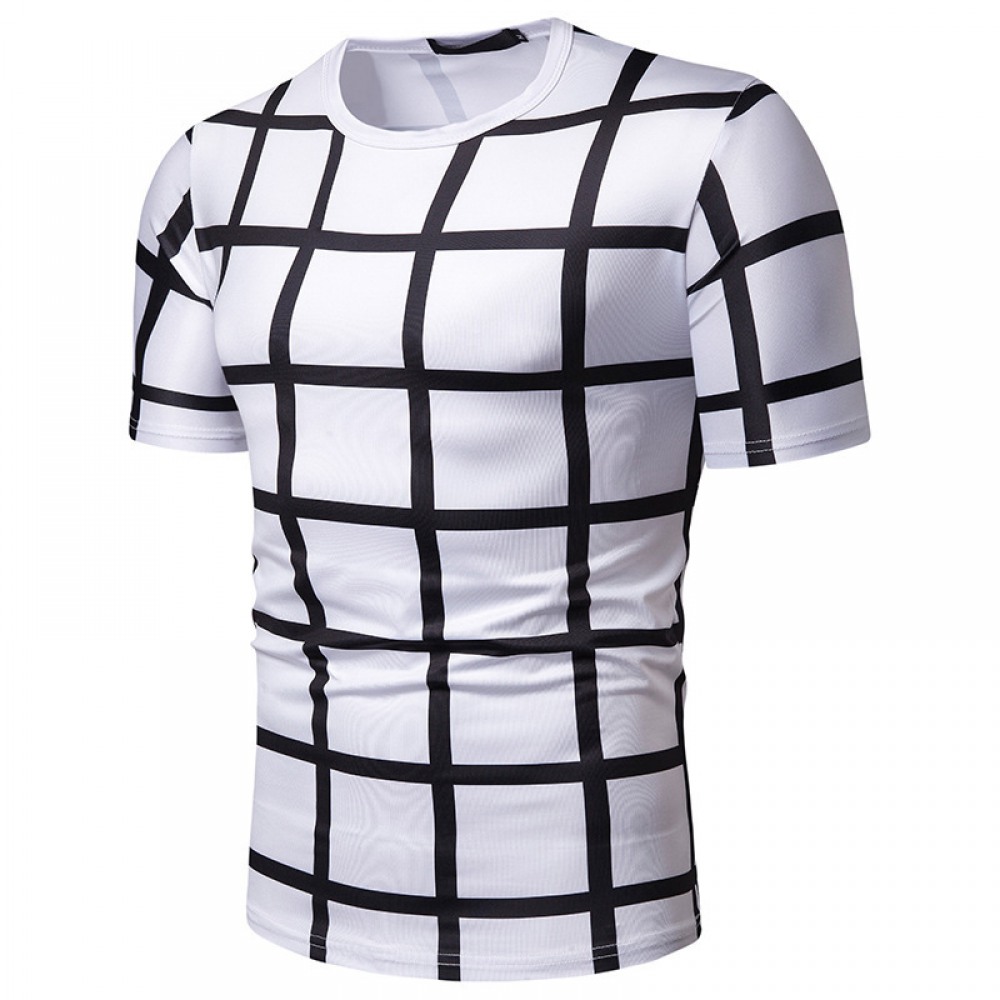 New Summer Men’s Plaid Print Short-Sleeved T-Shirt